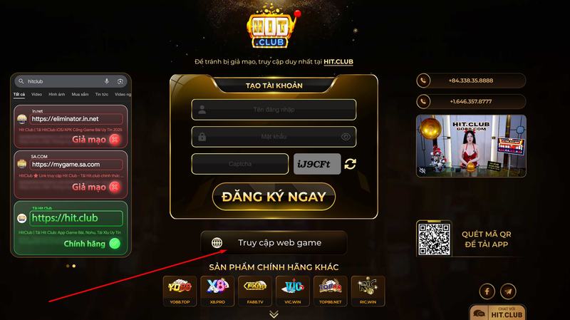 1. Click vào mục Truy cập web game trên nền tảng Hitclub.